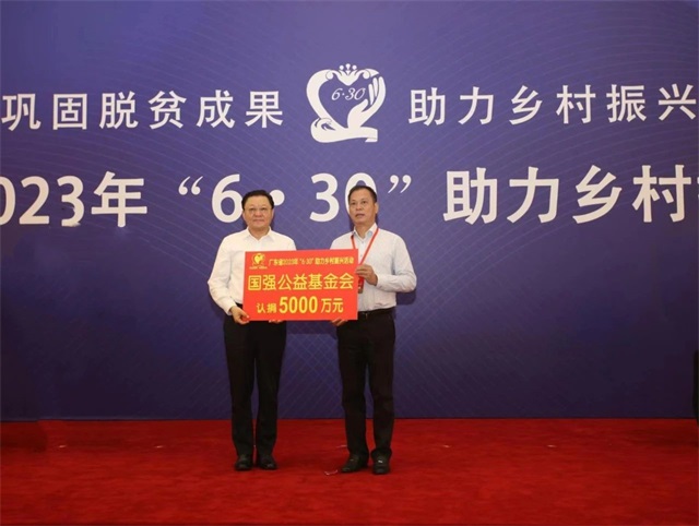 在本届“广东扶贫济困日”活动上,国强公益基金会再捐5000万元人民币,继续支持助力广东及对口帮扶省份的乡村振兴工作。